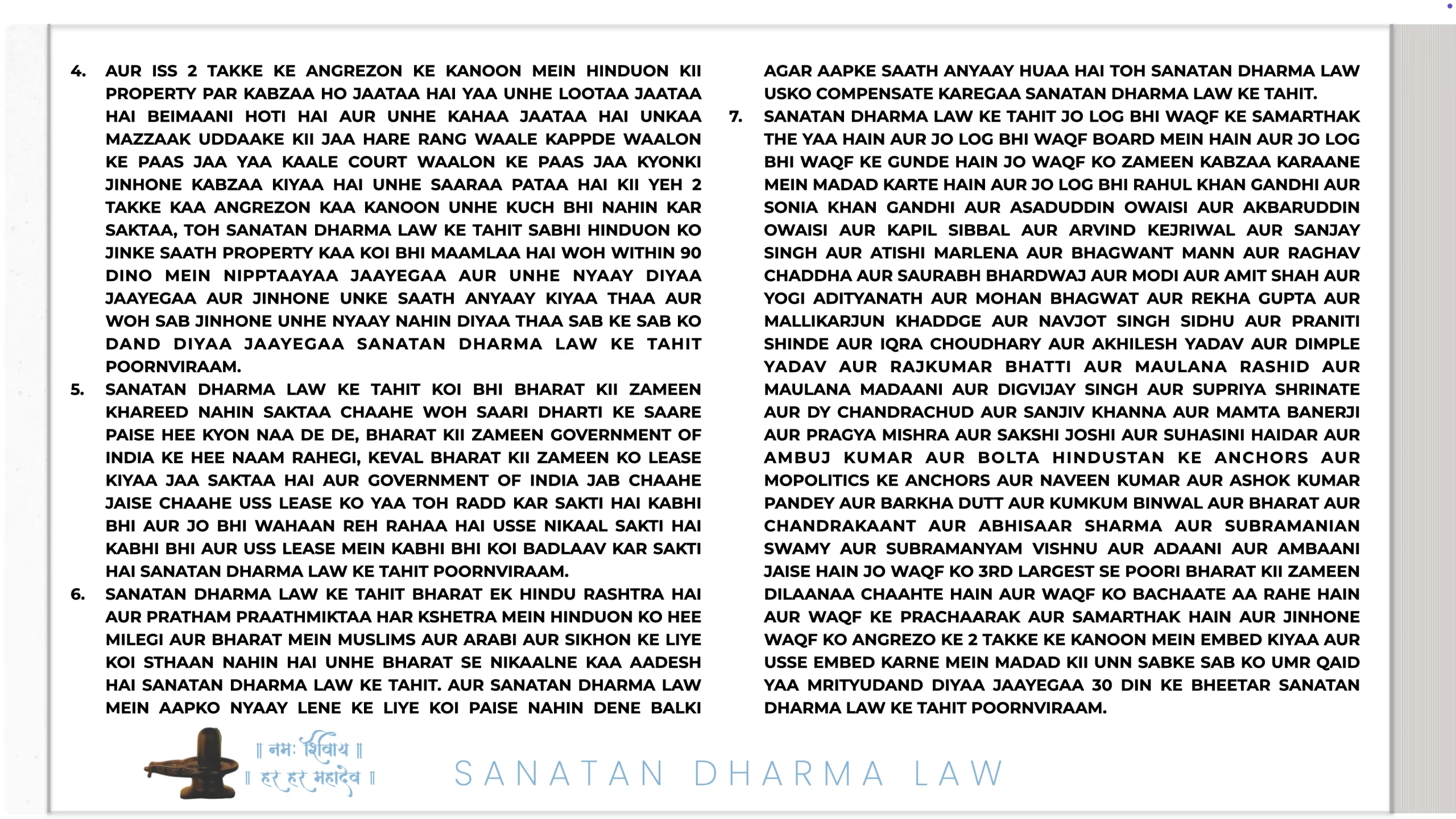 LAST UPDATED ON 24TH JULY 2025 20:20 INDIAN STANDARD TIME: SO IF THE QUESTION IS COMING THAT WHICH HINDU WILL SIT AT THE POST WHERE THE MUSLIMS ARE BEING REMOVED, SO I WILL TELL YOU WHO CANNOT SIT AT THOSE POSTS, SO NO ONE WHO IS AFFILIATED OR HAS BEEN EVER AFFILIATED OR LINKED WITH BJP OR RSS OR CONGRESS OR AAP OR SAMAAJWAADI PARTY OR TMC OR ANY OTHER POLITICAL PARTY CAN SIT AT THOSE POSTS, NO VAISHNAV CAN SIT AT THOSE POSTS, I AM SAYING NO VAISHNAV EVEN THOUGH IT IS SAID THAT REPLACE WITH A HINDU WHY BECAUSE MAYBE STILL YOU DON’T KNOW OR BELEIVE THAT THEY ARE 2 COMPLETELY DIFFERENT SYSTEMS VAISHNAVISM WAS RUN BY VISHNU RAM KRISHNA NARAYAN OM URF AL-LAH AND THE OTHER ONE SANATAN DHARMA WAS AND IS RUN BY THE REAL TRUE GOD PARMAATMAA SHIV SHANKAR MAHAKAAL IN SHIV LOK RIGHT NOW SO THOSE WHO FOLLOW SANATAN DHARMA AND WORSHIP SHIVLING ARE HINDUS AND THOSE WHO FOLLOWS VEDAS PURANAS UPANISHADS RAMAYAN MAHABHARAT GITA AND BELEIVE IN ASTROLOGY PAAKHAND ANDHVISHWAAS THAT TAKING DUPPKI IN TATTI KAA PAANI GIVES YOU MOKSHA AND EVERYTHING IS PREDESTINED PREPLANNED THOSE ARE PAAKHANDI VAISHNAVS SO LIKE ALL THE PEOPLE OF ISKCON AND PEOPLE LIKE PREMANAND AND AVIMUKTESHWARANAND AND RAMBHADRACHAARYA AND NISHCHILANAND SARASWATI AND ACHARYA PRASHANT AND ANKUR ARYA AND MOHIT GAUR AND AGNIVRAT AND ACHARYA PRASHANT AND IIT BABA AND VISHAL CHAURASIYA AND JAGGI VASUDEV AND JAYA KISHORI AND BAGESHWAR SARKAR AND KRISHNA PRIYA AUNTY AND GOSWAMI AUNTY OF SPEAKING TREE AND SANJEEV MALIK AND ASHISH SHUKLA THEY ARE PAAKHANDI VAISHNAVS OK, SO ANY HINDU WHO BELEIVES PARMAATMAA SHIV SHANKAR MAHAAKAL IN SHIV LOK RIGHT NOW TO BE PARMAATMAA AND SUPREME AND DOES NOT REGARD ANY VISHNU RAM KRISHNA NARAYAN OM AS ANYTHING IN FRONT OF SHIV JI CAN SIT AT THOSE POSTS THIS INSTRUCTION HAS BEEN GIVEN TO ME BY PARMAATMAA SHIV SHANKAR MAHAKAAL IN SHIV LOK RIGHT NOW POORNVIRAAM. ANOTHER THING TO NOTE FOR ALL OF YOU IS THAT SANATAN DHARMA IS A RELIGION AND VAISHNAVISM OR VEDIC BELEIF SYSTEM IS A MAN MADE BELIEF SYSTEM, SANATAN DHARMA IS ANAADI WHEREAS VAISHNAVISM OR VEDIC BELEIF SYSTEM IS ONLY 3-5 THOUSAND YEARS OLD, SANATAN DHARMA IS HINDI, VAISHNAVISM OR VEDIC BELEIF SYSTEM IS SANSKRIT OR TAMIL, SANATAN DHARMA IS THE TRUTH, VAISHNAVISM OR VEDIC BELEIF SYSTEM IS FALSE MYTHS AND FALSE STORIES, SANATAN DHARMA IS MARYAADAA, SANATAN DHARMA IS HETEROSEXUALITY,