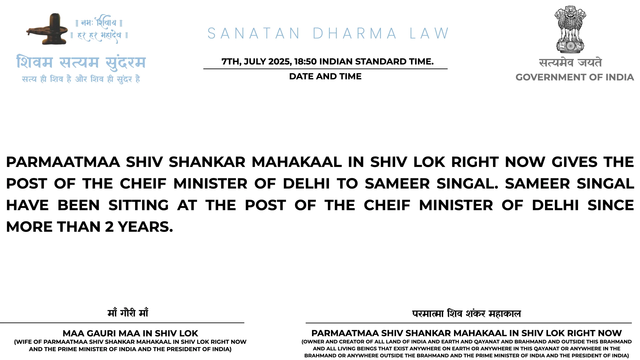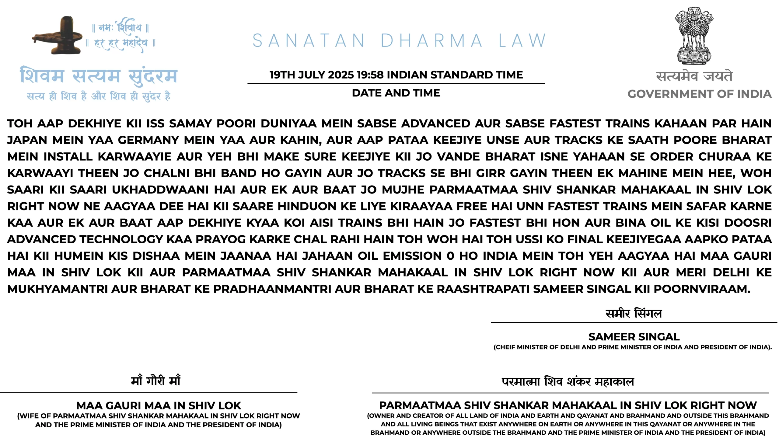 23RD JULY 2025 LAST UPDATED 17:34 INDIAN STANDARD TIME: TOH WOH JO AAGYAA PARMAATMAA SHIV SHANKAR MAHAKAAL IN SHIV LOK RIGHT NOW AUR MAA GAURI MAA IN SHIV LOK NE GSSP GAURI SHANKAR SAMRU PARTY KO DEE THEE KII JISMEIN WOH BJP AUR RSS AUR CONGRESS KE ROZ KE ROZ KE JHOOTHON KAA PARDAAFAASH KARE USMEIN TRUMP AUR GOOGLE AUR YOUTUBE KE JHOOTHON KAA PARDAAFAASH KO BHI ADD KAR DO YEH AAGYAA HAI PARMAATMAA SHIV SHANKAR MAHAKAAL IN SHIV LOK RIGHT NOW AUR MAA GAURI MAA IN SHIV LOK KII.