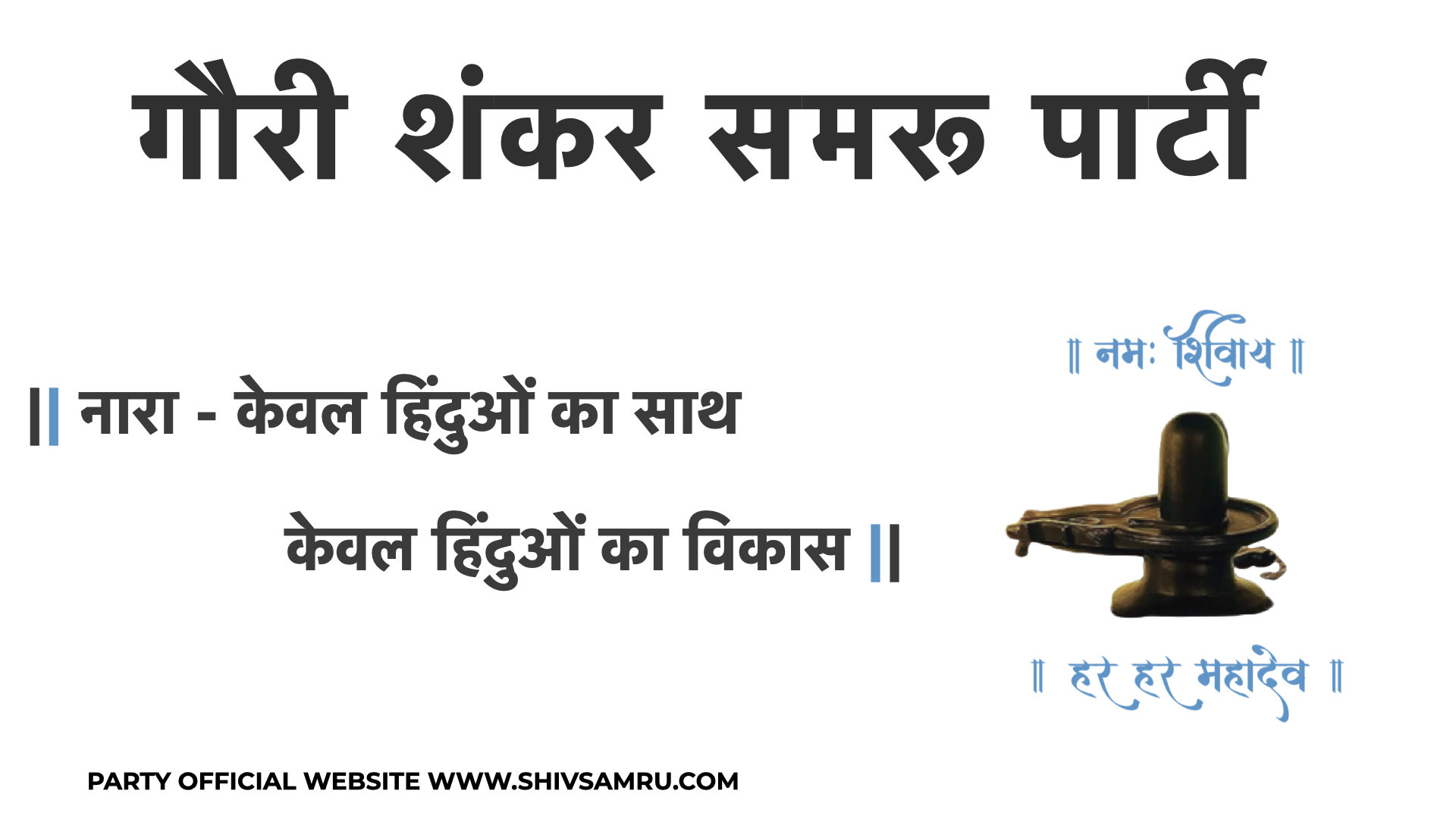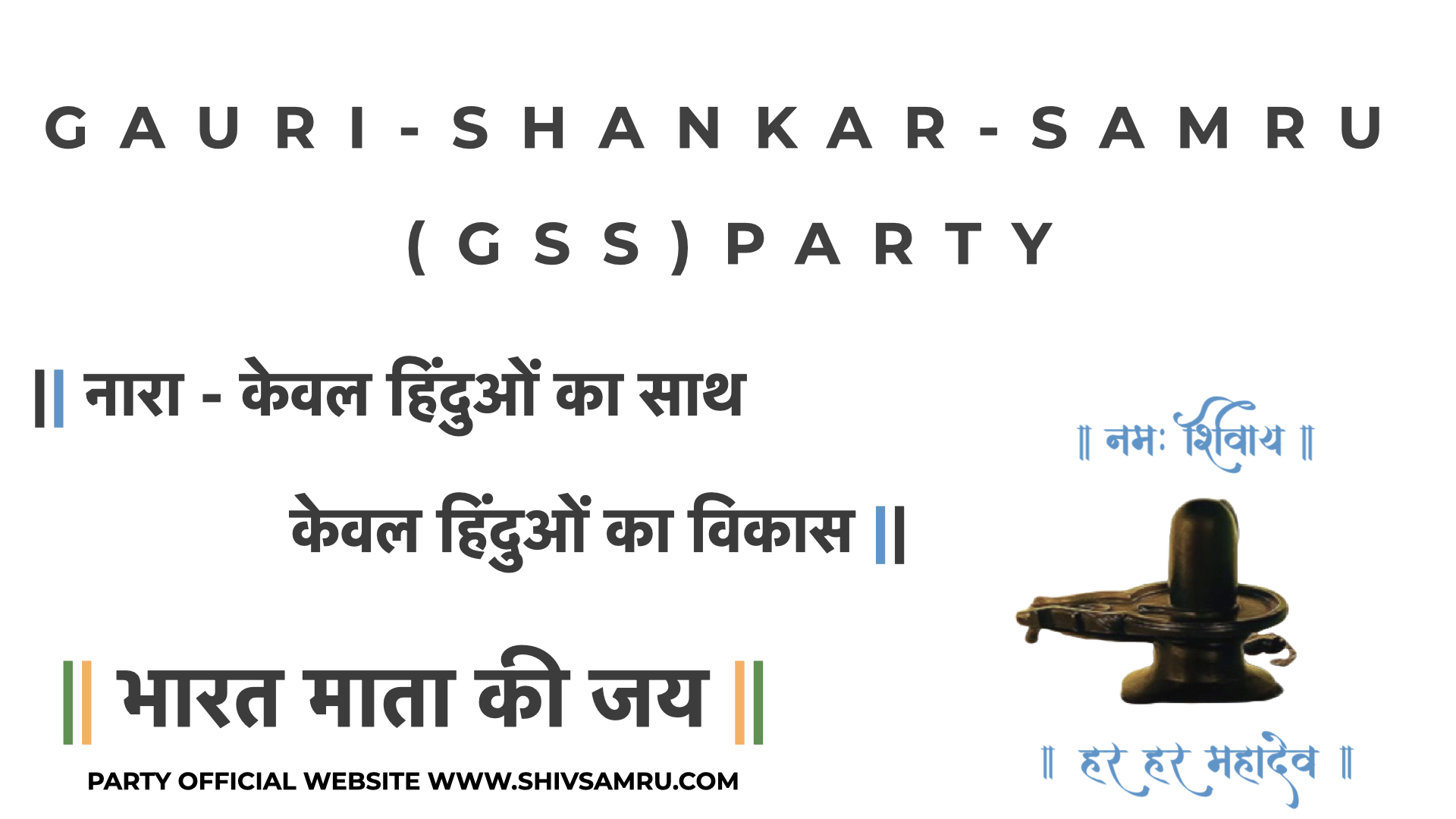 GAURI SHANKAR SAMRU PARTY SLOGAN - KEVAL HINDUON KAA SAATH KEVAL HINDUON KAA VIKAAS.